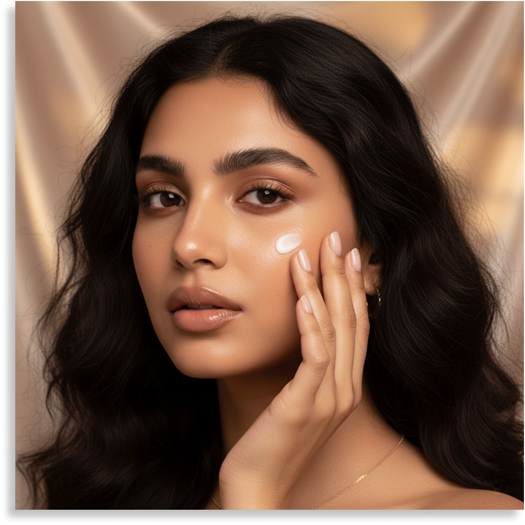 Take a pea-sized amount, massage upward to lock in hydration.4. Admire:
